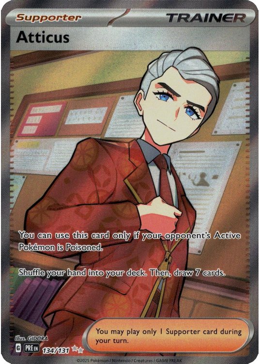 Atticus – 134/131 fra SV08.5 Prismatic Evolutions serien.