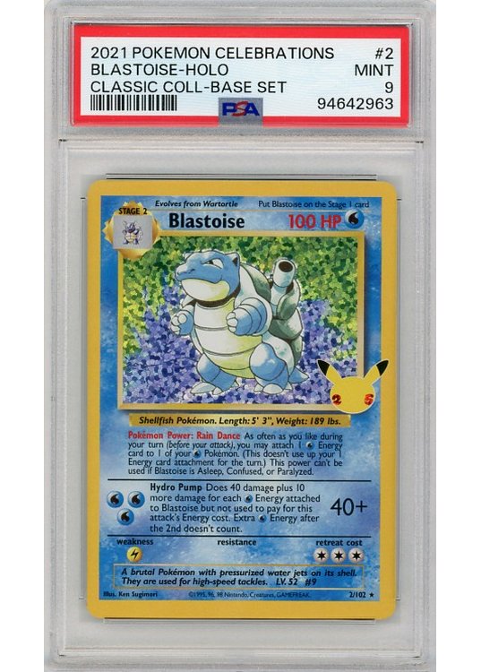 Du køber her Blastoise – Classic Collection – 2/102 – PSA 9 fra SWSH Celebrations serien.