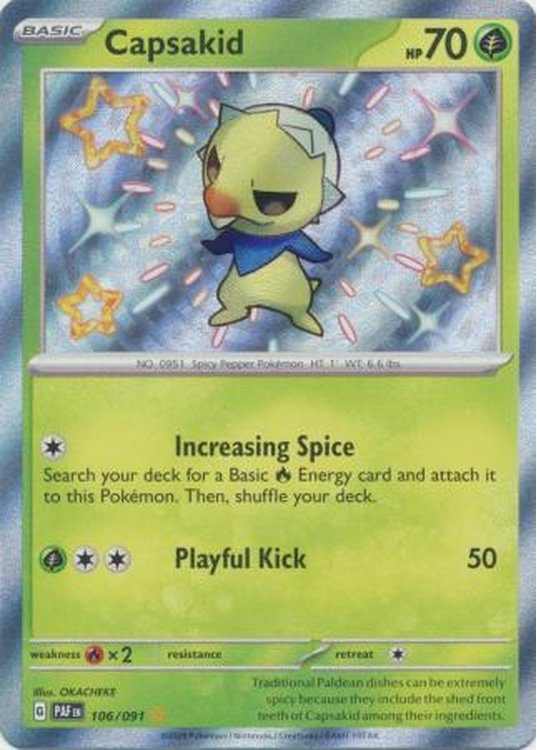 Capsakid – 106/091 fra SV04.5 Paldean Fates serien.