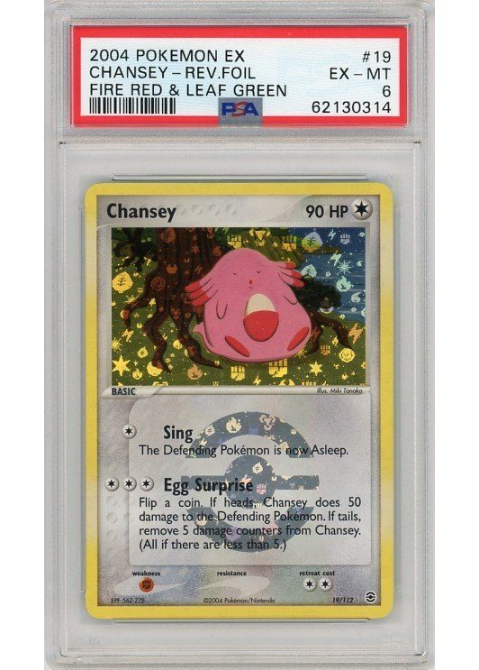 Chansey – 19/112 – Reverse Foil – PSA 6 fra EX FireRed & LeafGreen serien.