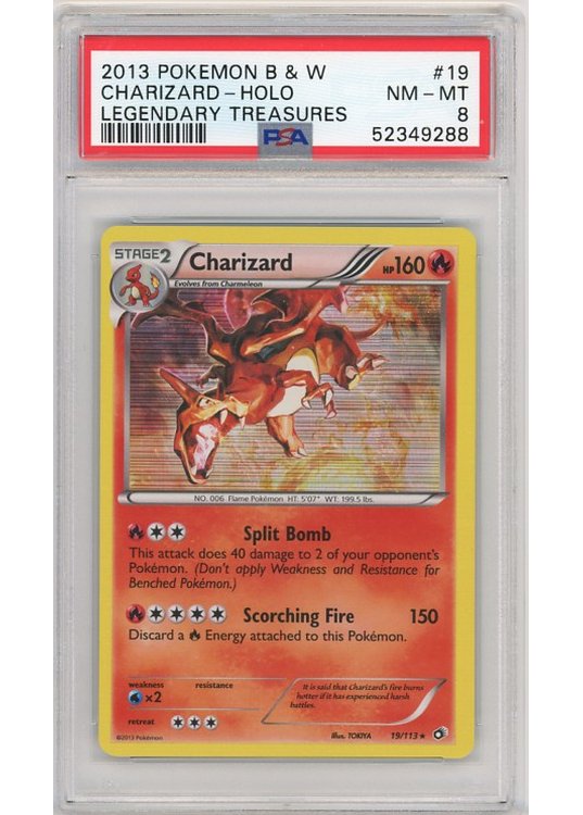 Charizard – 19/113 – PSA 8 fra B&W Legendary Treasures serien.