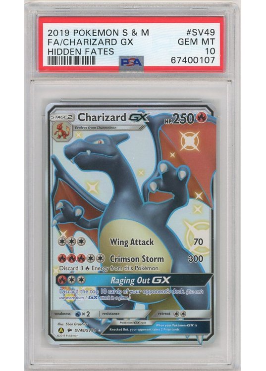 Charizard GX – SV49/SV94 – PSA 10 fra S&M Hidden Fates serien.