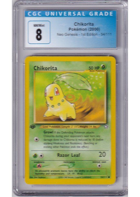 Chikorita – 54/111 – 1st Edition – CGC 8 fra Neo Genesis serien.