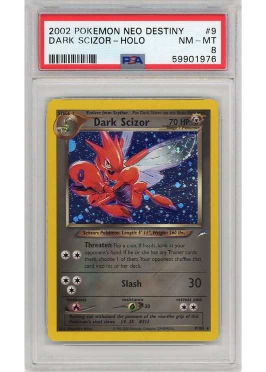 Dark Scizor – 9/105 – PSA 8 fra Neo Destiny serien.