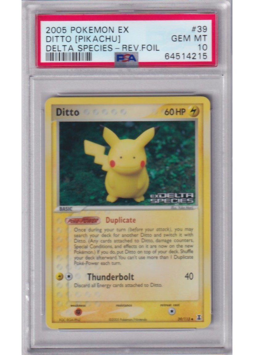 Ditto (Pikachu) – 39/113 – Reverse Foil – PSA 10 fra EX Delta Species serien.