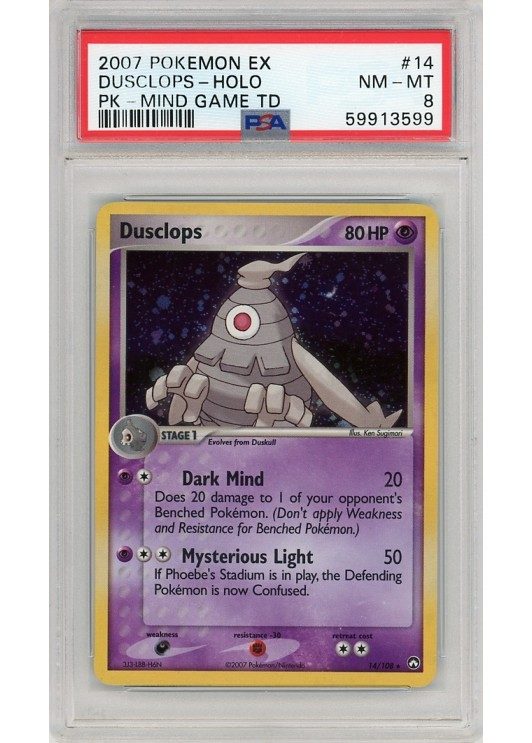 Dusclops – Cosmos Holo – 14/108 – PSA 8 fra EX Power Keepers serien.
