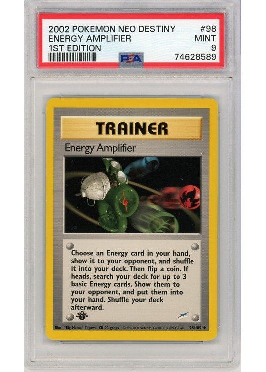 Energy Amplifier – 98/105 – 1st Edition – PSA 9 fra Neo Destiny serien.
