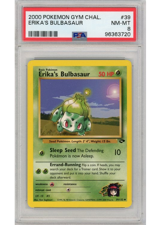 Erika’s Bulbasaur – 39/132 – PSA 8 fra Gym Challenge serien.