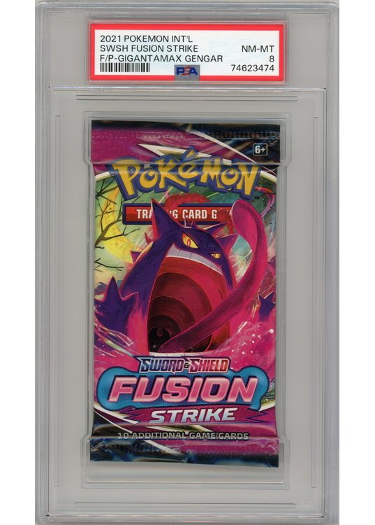 Her køber du Fusion Strike Booster Pakke – Gengar artwork – PSA 8 fra SWSH Fusion Strike serien.