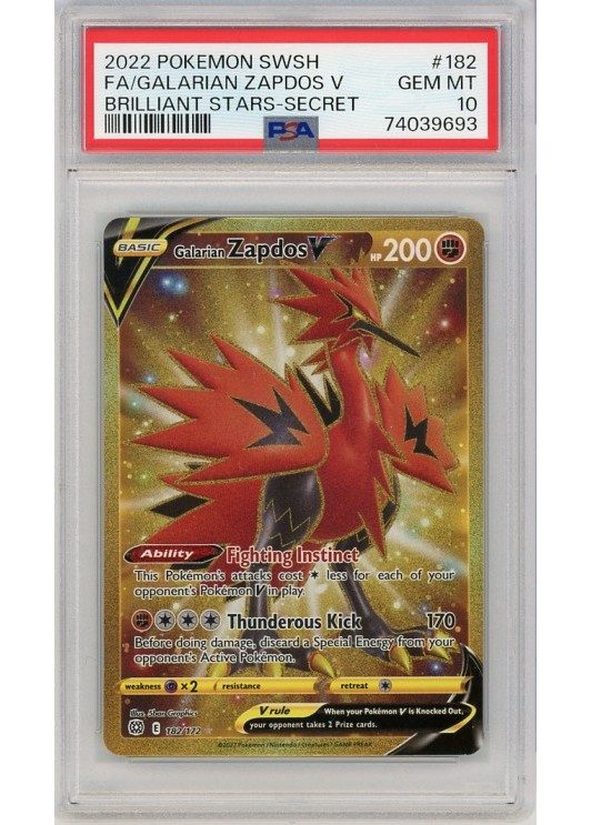 Galarian Zapdos V – 182/172 – PSA 10 fra SWSH Brilliant Stars serien.