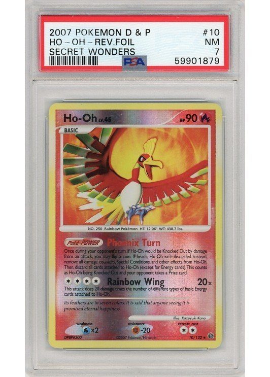 Ho-oh – 10/132 – Reverse Foil – PSA 7 fra D&P Secret Wonders serien.