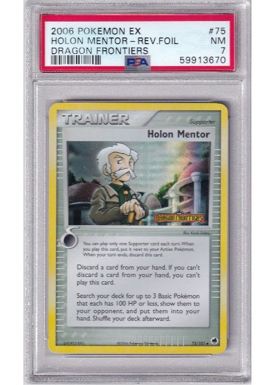 Holon Mentor – 75/101 – Reverse Foil – PSA 7 fra EX Dragon Frontiers serien.