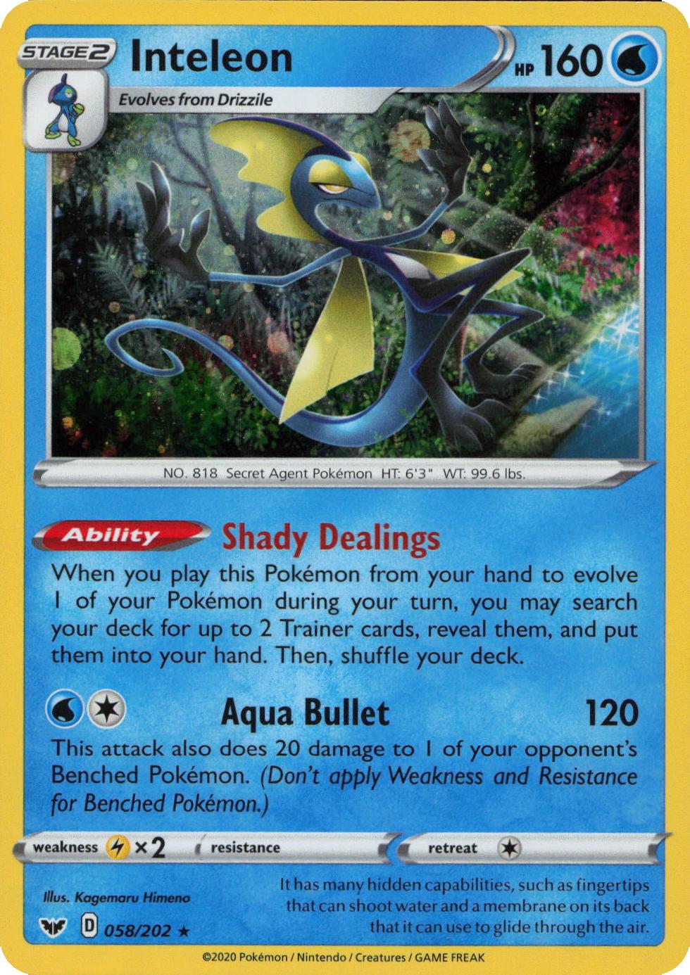 Inteleon – 058/202 – Cosmos Holo fra Sword & Shield serien.