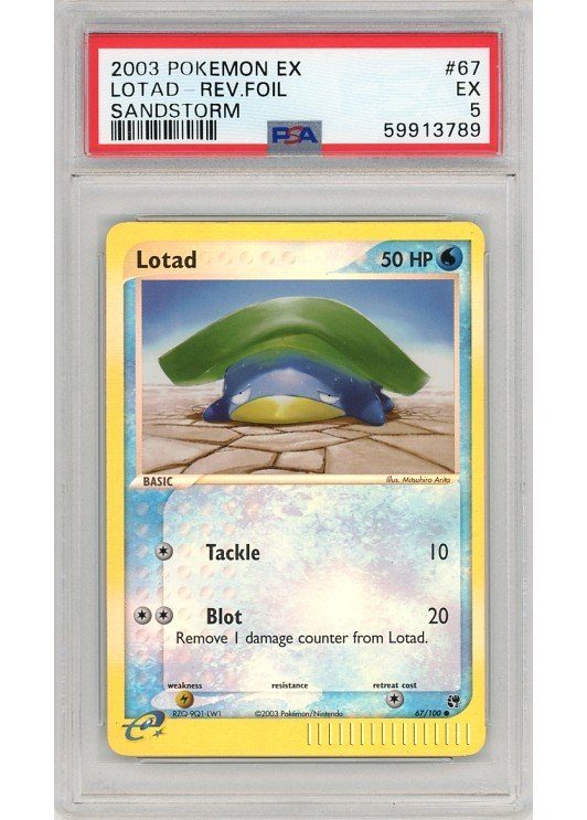 Lotad – 67/100 – Reverse Foil – PSA 5 fra EX Sandstorm serien.