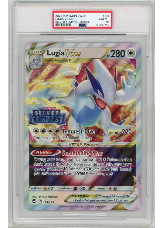 Lugia VSTAR – Silver Tempest Stamp – 139/195 – JUMBO Kort – PSA 10 fra SWSH Silver Tempest serien.