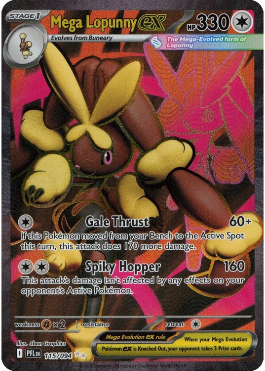 Du køber her Mega Lopunny ex – 115/094 fra ME02 Phantasmal Flames serien.