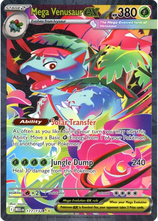 Du køber her Mega Venusaur ex – 177/132 fra ME01 Mega Evolution serien.