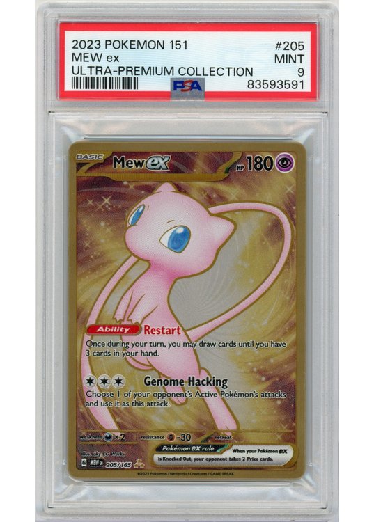 Du køber her Mew ex – Metal kort – 151 Mew UPC – 205/165 – PSA 9 fra SV03.5 151 serien.