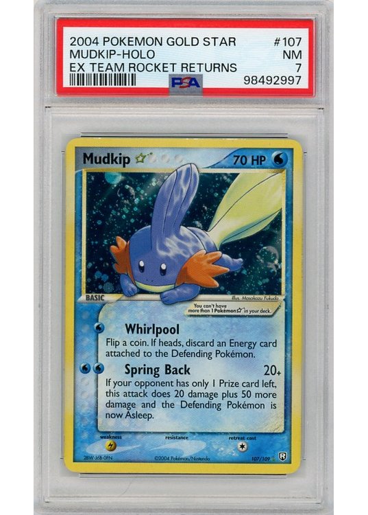 Mudkip * (Goldstar) – 107/109 – PSA 7 fra EX Team Rocket Returns serien.