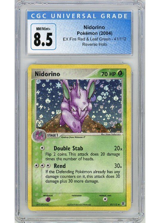 Nidorino – 41/110 – Reverse Foil – CGC 8.5 fra EX FireRed & LeafGreen serien.