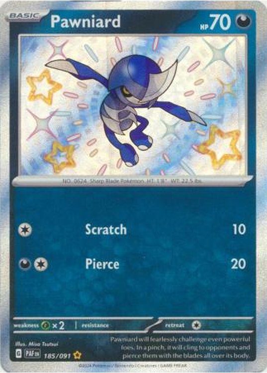 Pawniard – 185/091 fra SV04.5 Paldean Fates serien.