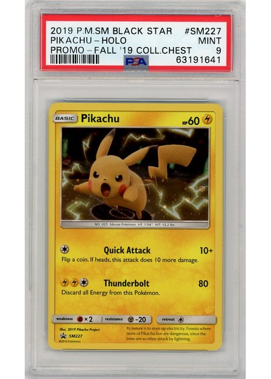 Pikachu – SM227 – PSA 9 fra SM Black Star Promo serien.