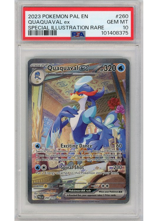 Du køber her Quaquaval ex – 260/193 – PSA 10 fra Scarlet & Violet serien.