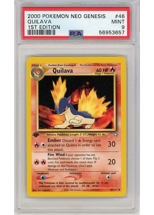 Du køber her Quilava – 46/111 – 1st Edition – PSA 9 fra Neo Genesis serien.