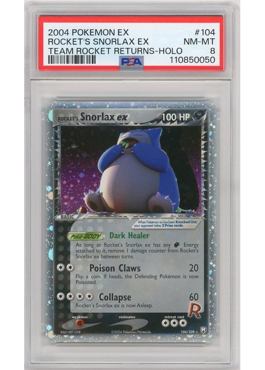 Rocket’s Snorlax ex – 104/109 – PSA 8 fra EX Team Rocket Returns serien.