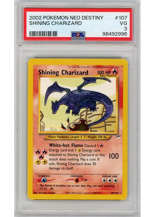 Shining Charizard – 107/105 – PSA 3 fra Neo Destiny serien.