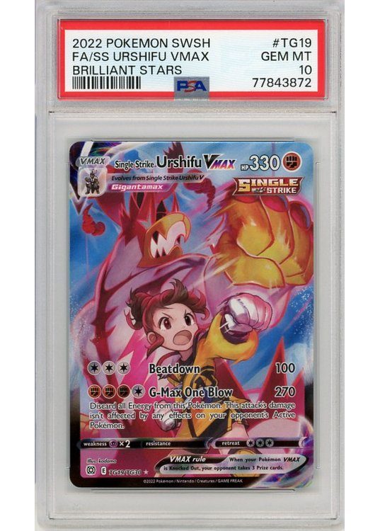 Single Strike Urshifu VMAX – TG19/TG30 – PSA 10 fra SWSH Brilliant Stars serien.