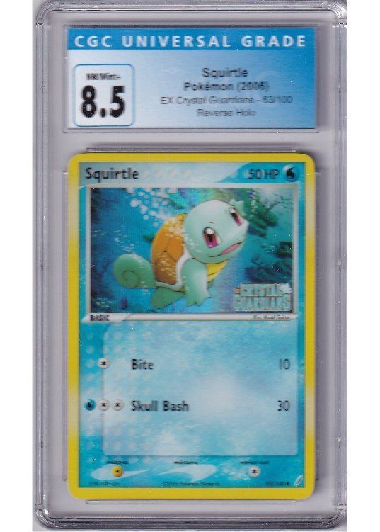 Squirtle – 63/100 – Reverse Foil – CGC 8.5 fra EX Crystal Guardians serien.