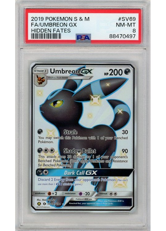 Umbreon GX – SV69/SV94 – PSA 8 fra S&M Hidden Fates serien.