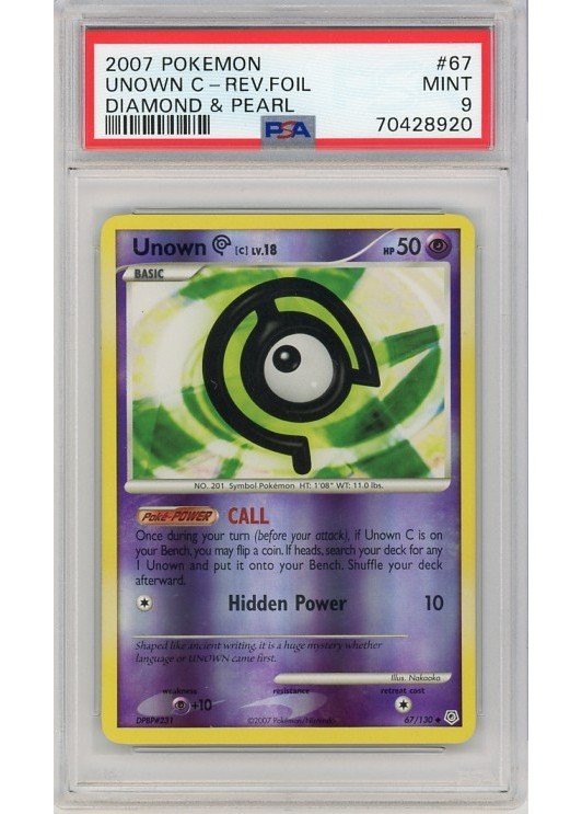 Unown C – 67/130 – Reverse Foil – PSA 9 fra Diamond & Pearl serien.