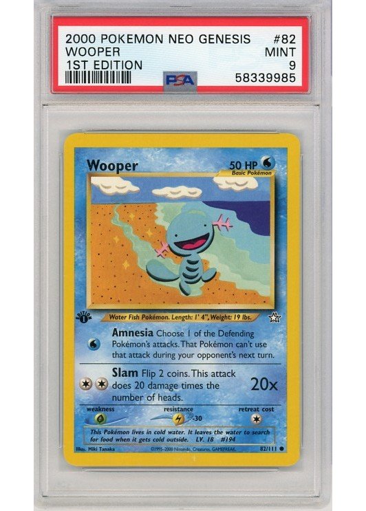 Du køber her Wooper – 82/111 – 1st Edition – PSA 9 fra Neo Genesis serien.